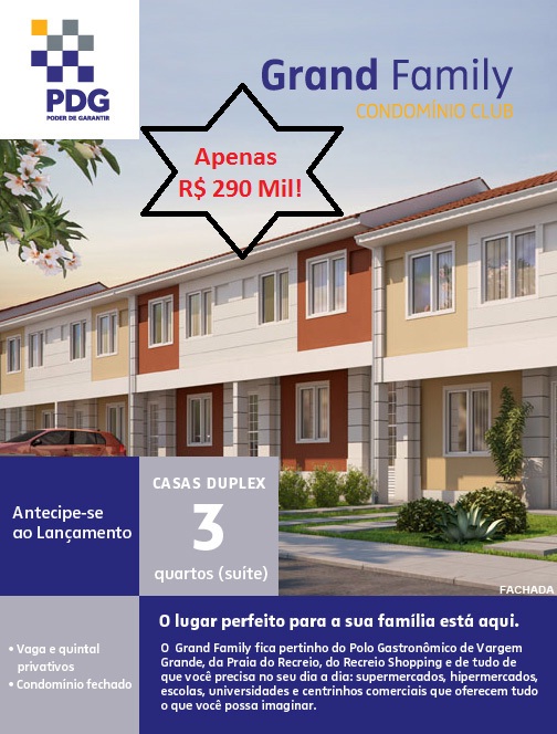 Construtora CHL colocou à venda em Jacarepaguá, ao lado da Record o Grand Family Club com a ideia fixa de promover o bairro. São casas 03 quartos, de aproximadamente 84,27m². Você vai logo perceber que a praia ficou muito perto de você.